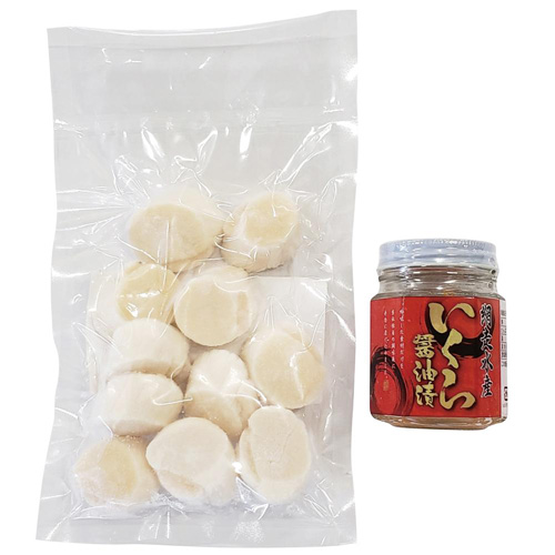 北海道で人気の海鮮食材といえば上位に上がる、いくら醤油漬とほたて貝柱をセットにしました。